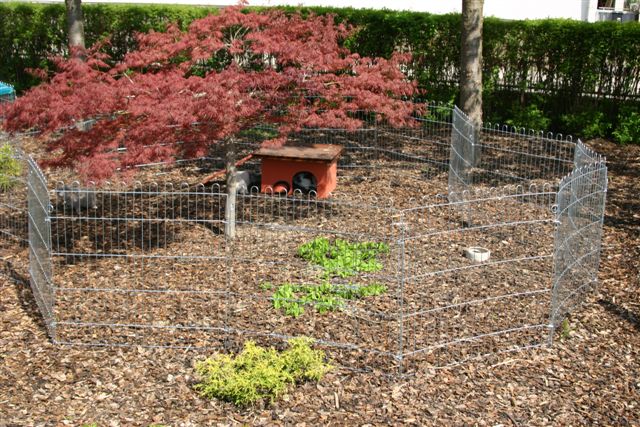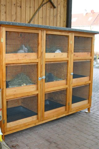 Meine Zwerge leben in diesem Aussenkäfig. Die Trennwände können bei Bedarf herausgenommen werden. Im Moment ist der Stall noch nicht ganz belegt. Wird sich aber sicher bald ändern.